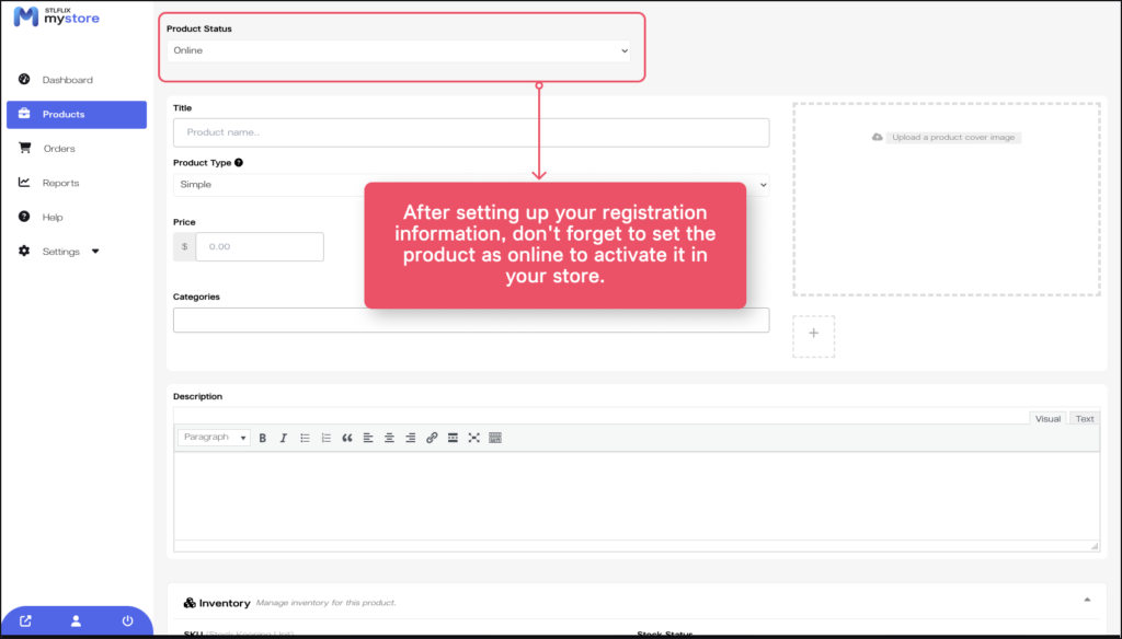 3. Finally, after completing the registration of a new product, don’t forget to change the status from “Draft” to “Online.” After that, your product will appear in your store.