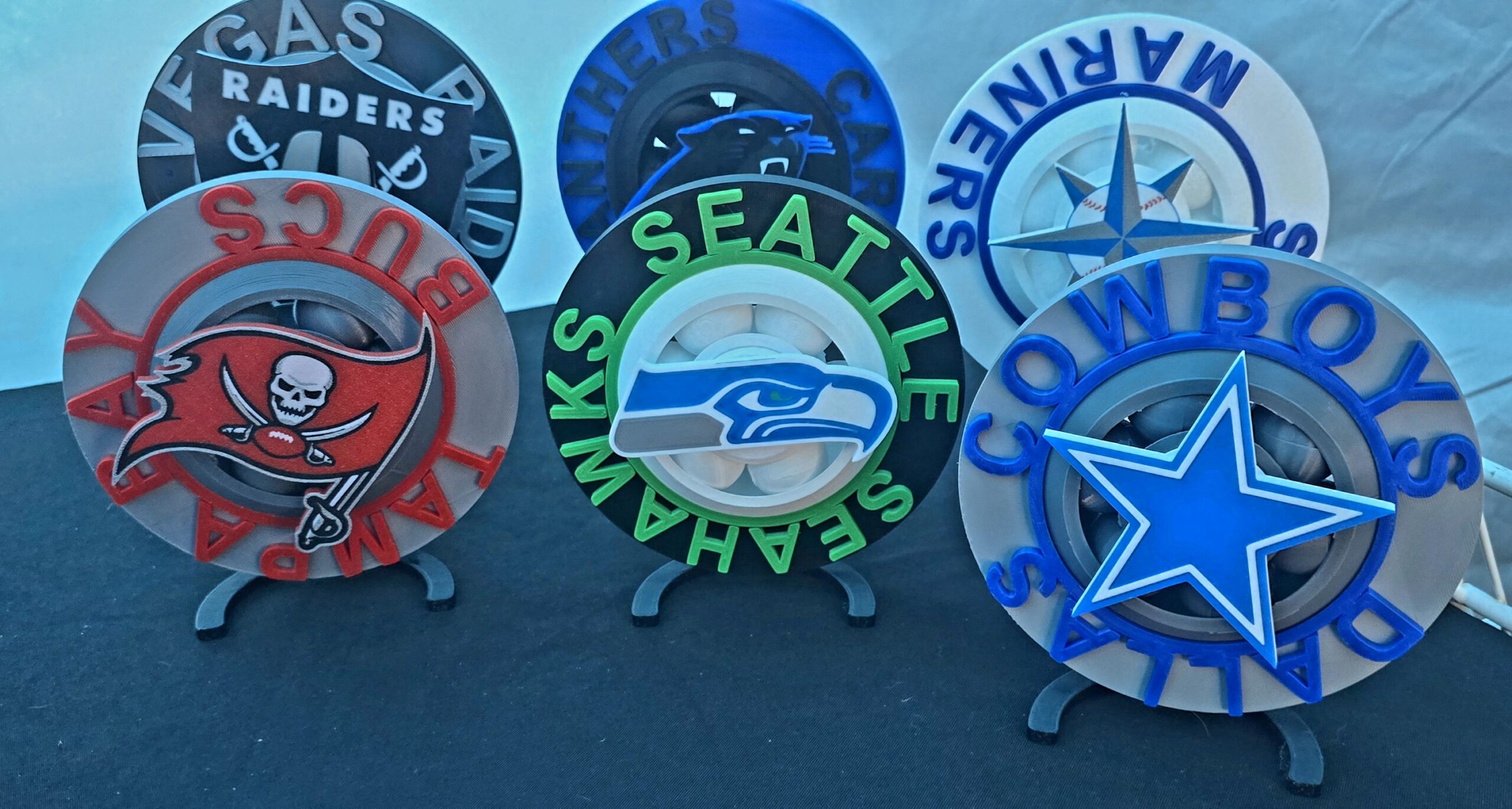 Show your team spirit in style with our 3D-printed Spinner Fan Chains! Each chain features a bold team logo that spins freely — a total attention-grabber at games, parties, and events. Made from high-quality PLA on our Bambu Lab print farm, they’re lightweight, detailed, and made to impress.