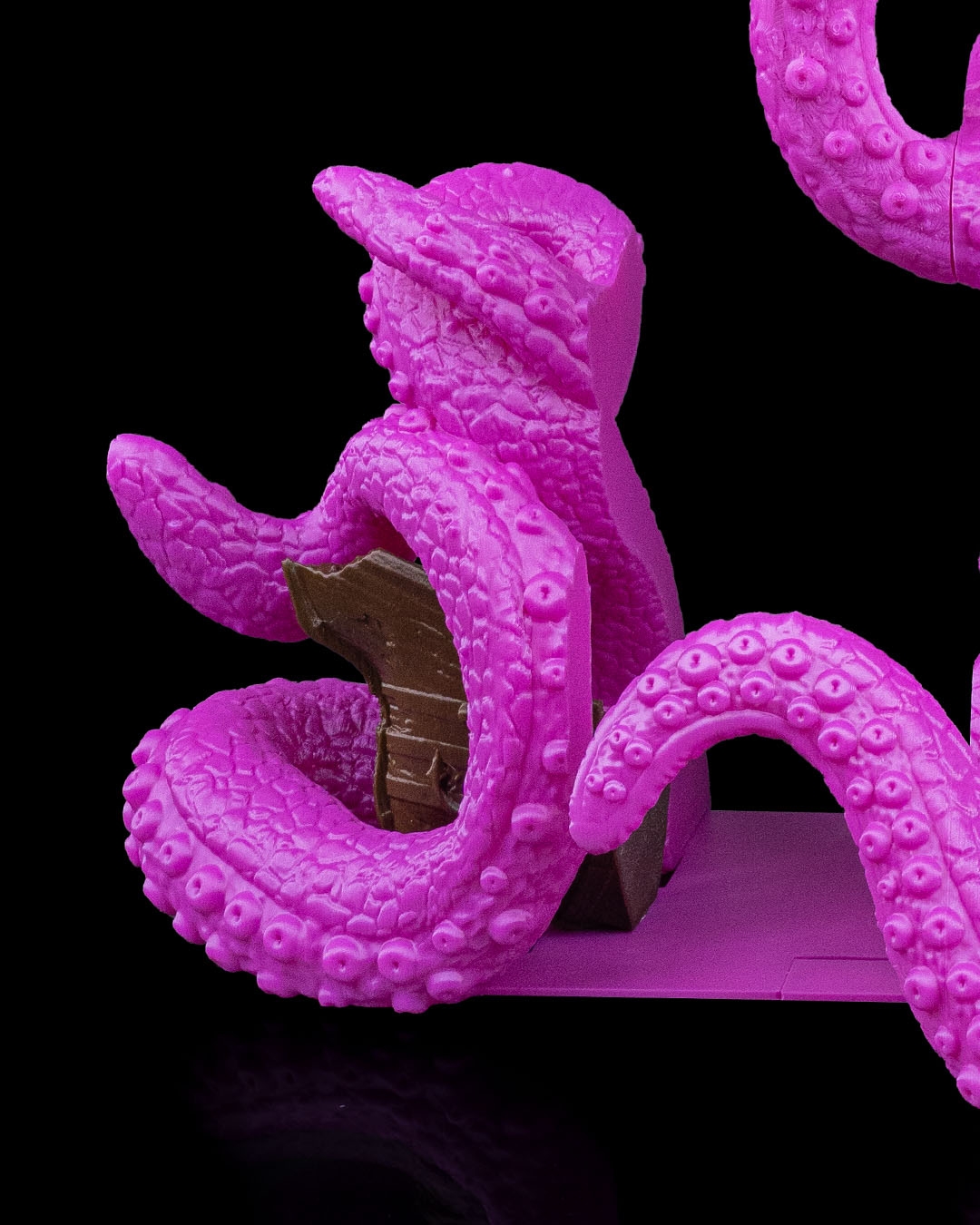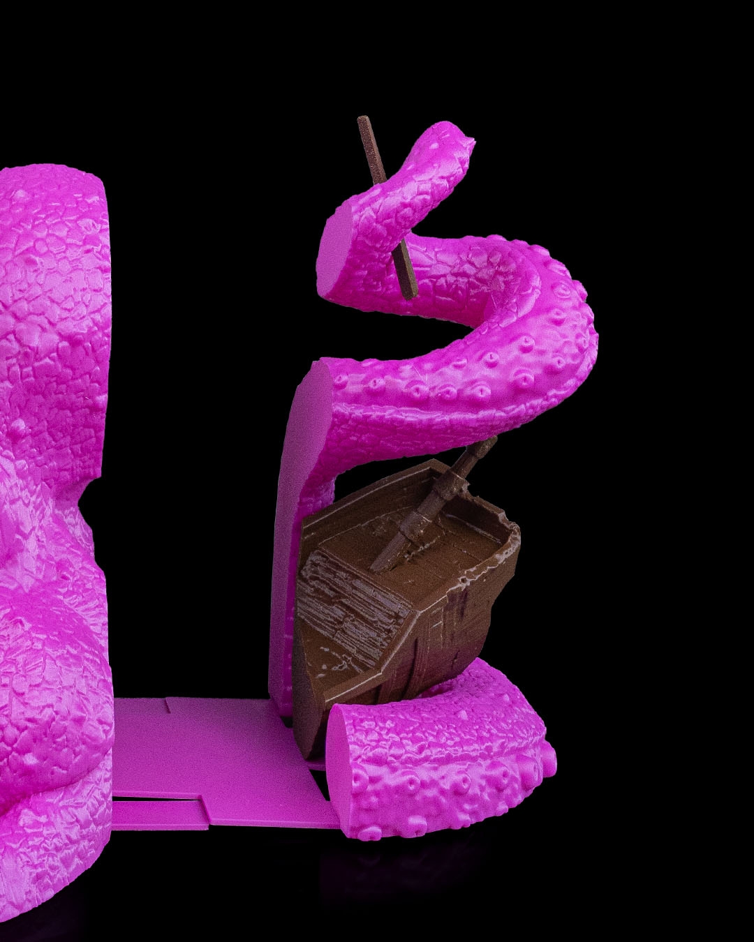 Tentáculos emergem das profundezas para capturar livros em alto-mar! Um apoio de livros dramático e divertido, ideal para coleções de fantasia ou histórias marítimas.