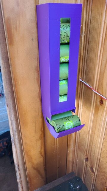 Doggie Poop Bag Dispenser. Mounts on the wall for easy access to poop bag rolls.