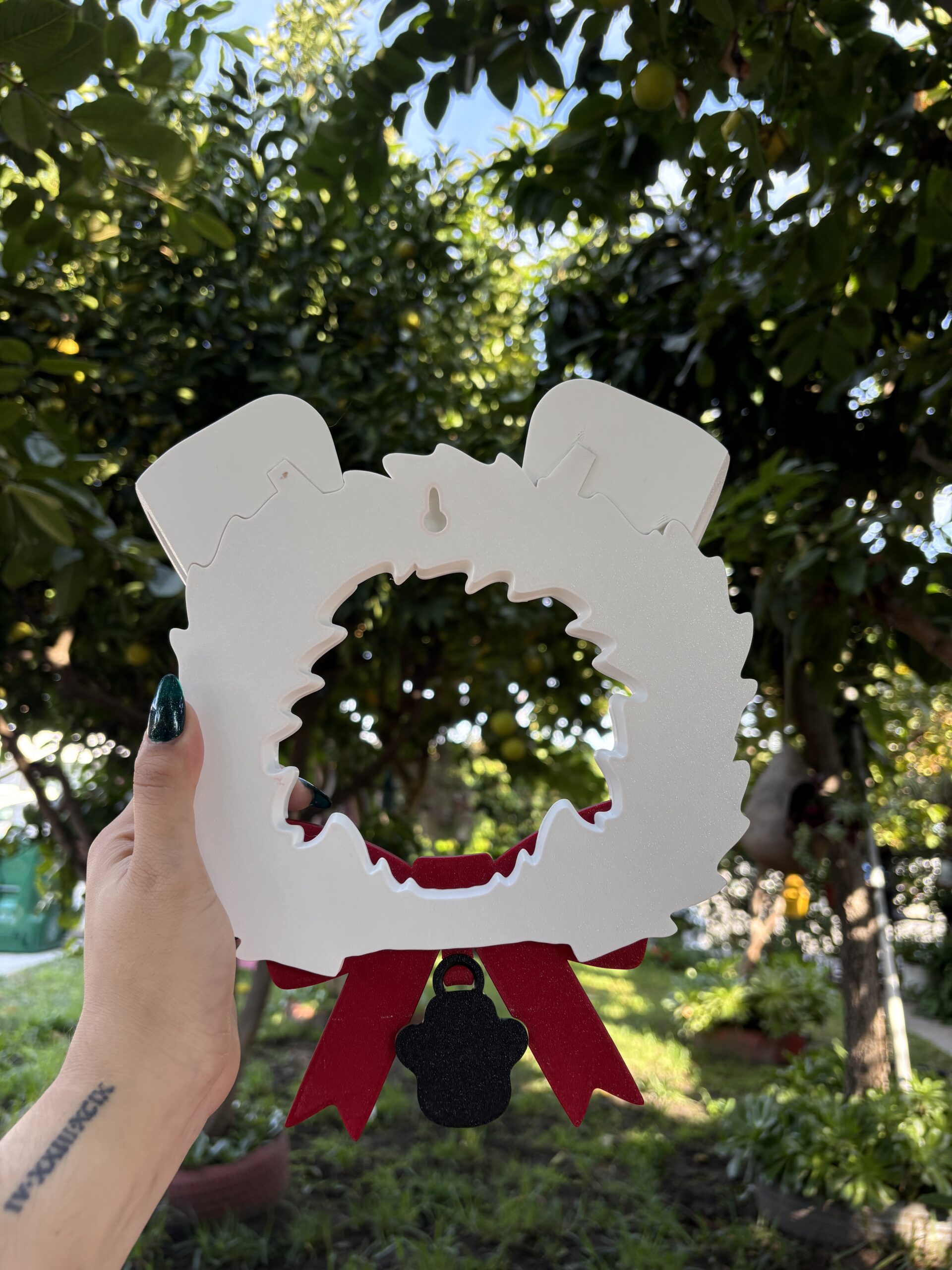 Doggy Christmas reef that is custom to colored desired. Can be hung on a wall by a nail