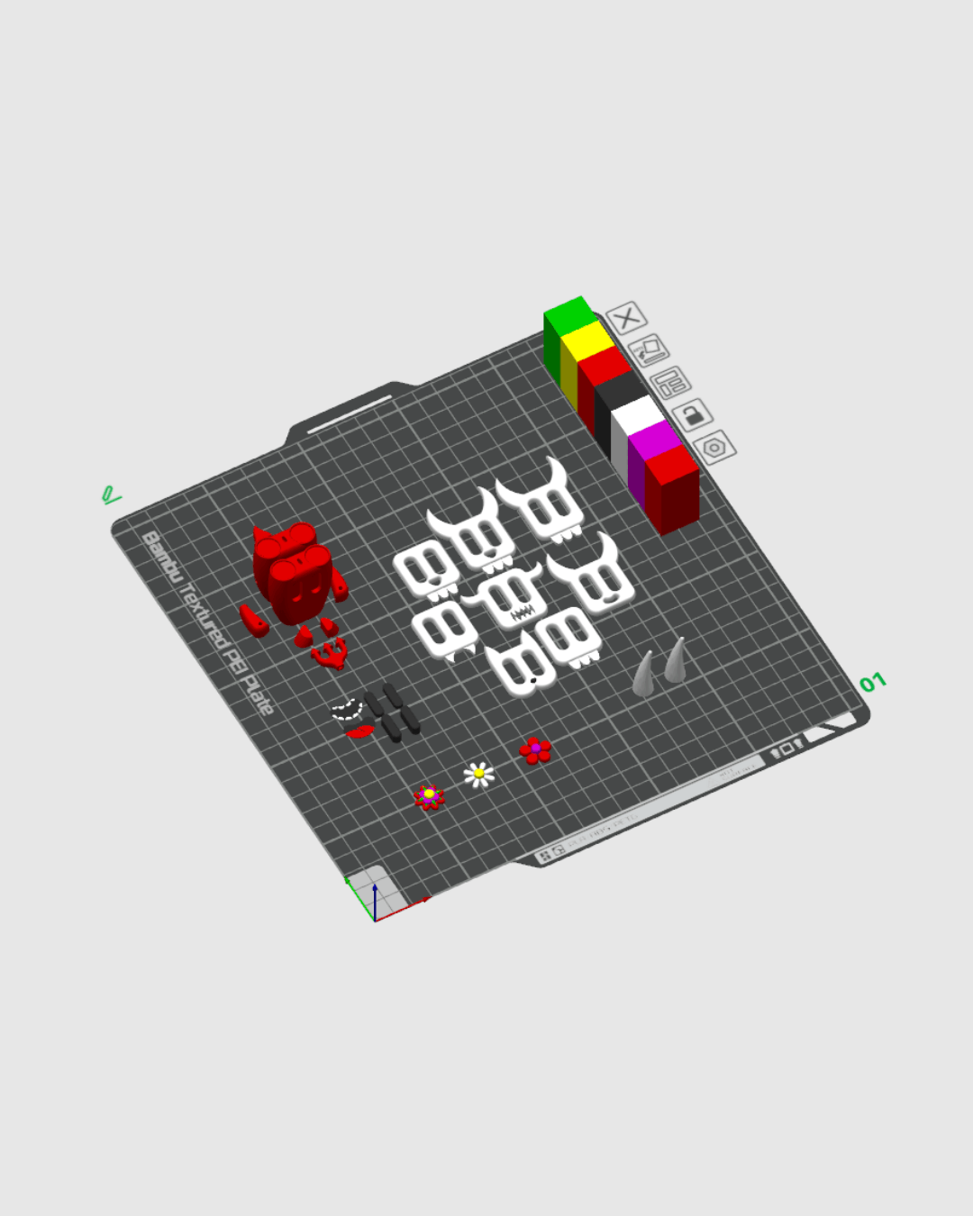 - Evil One monster parts (as pictured, featuring its vibrant red body, white horns, and a tiny trident accessory)