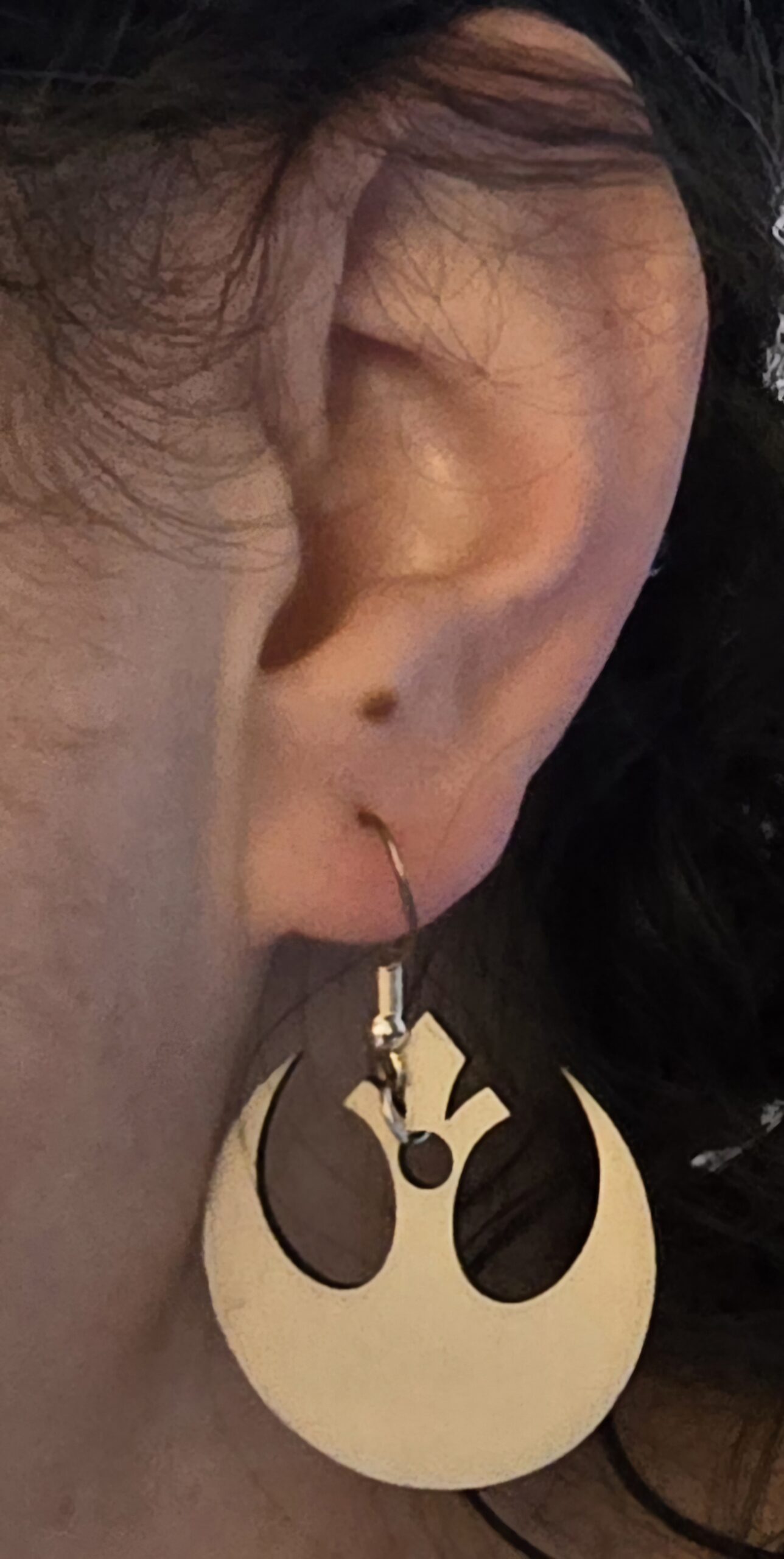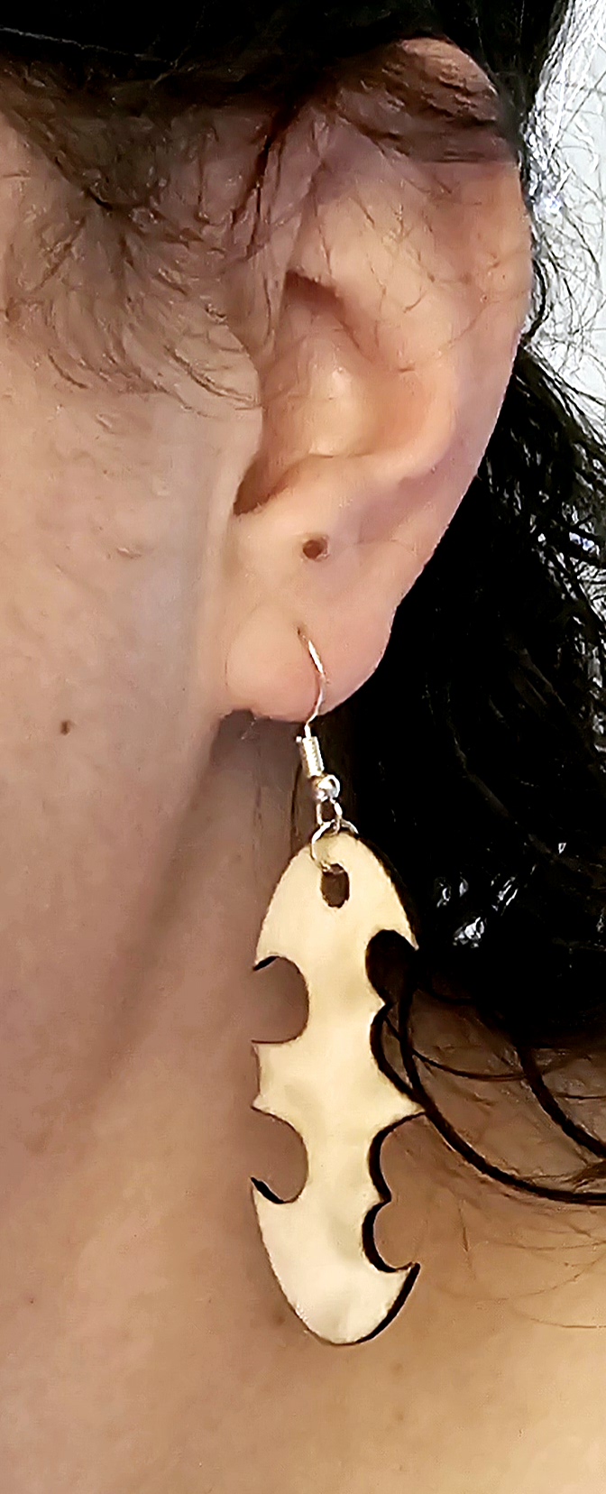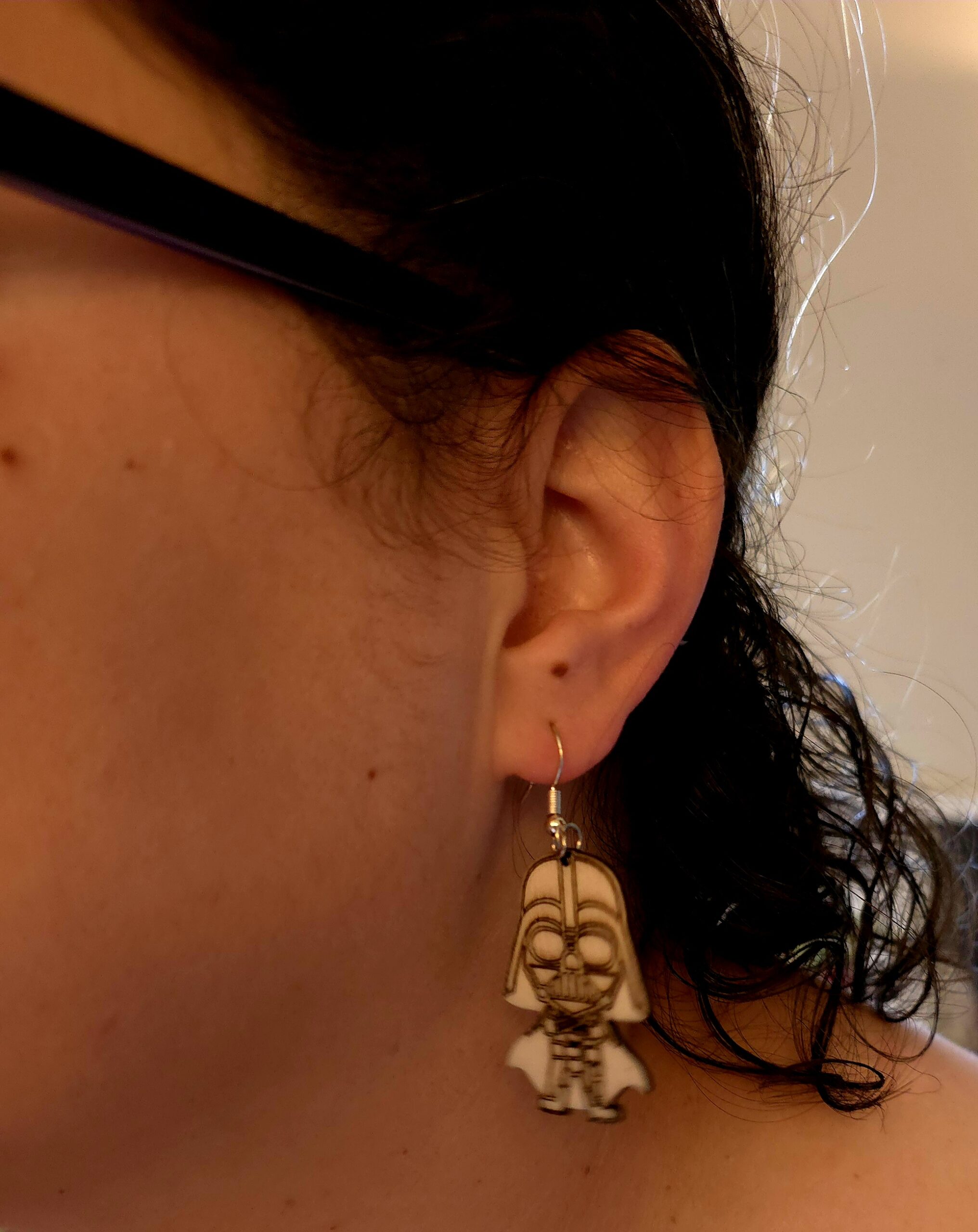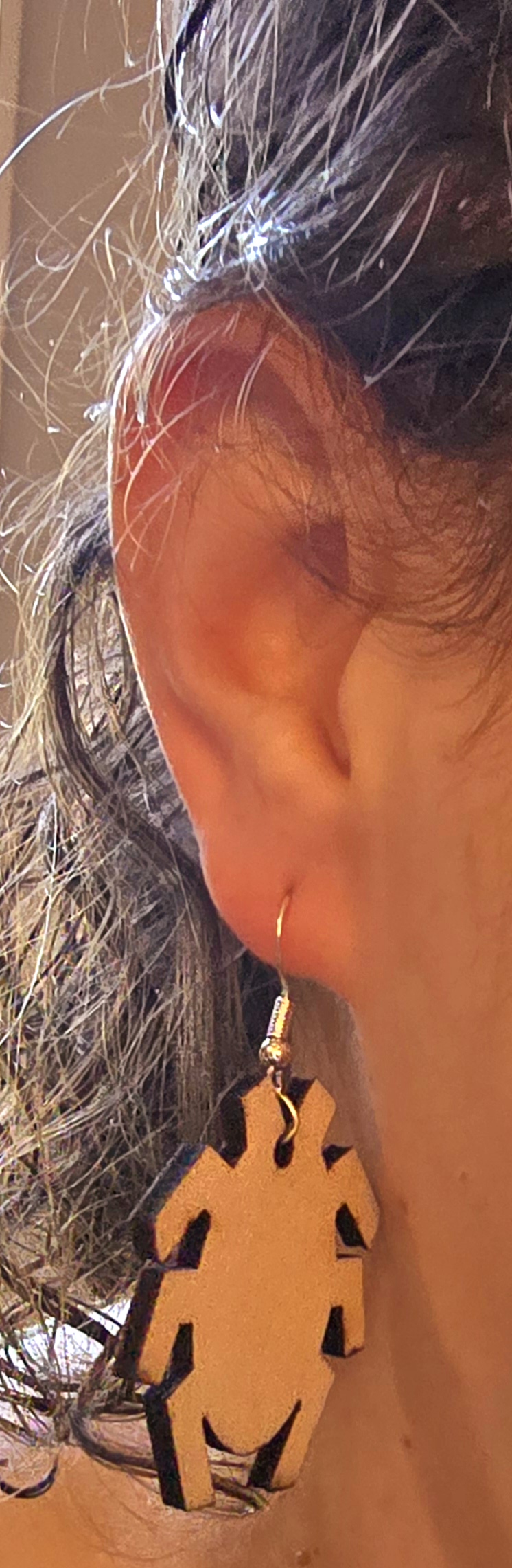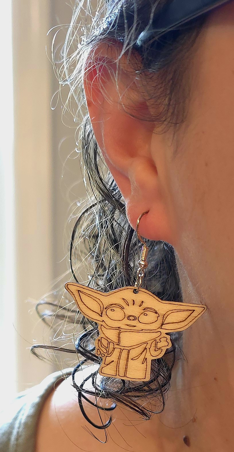 Wood cutout and laser engraved geek earrings from your favorite Fandom: comics, video games, Sci-fi, fantasy, movies, and TV. All metal is nickel free. If you don’t see what you’re looking for, send us a message. We can probably make it.