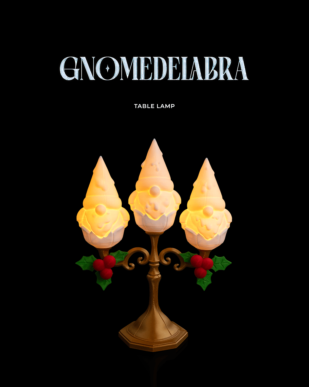 Mais do que uma luminária, esta é uma peça de arte produzida em impressão 3D, criada para ser o coração da sua decoração natalina. Três gnomos guardiões, com seus chapéus iluminados por um brilho quente e acolhedor, prontos para vigiar a alegria da sua família.