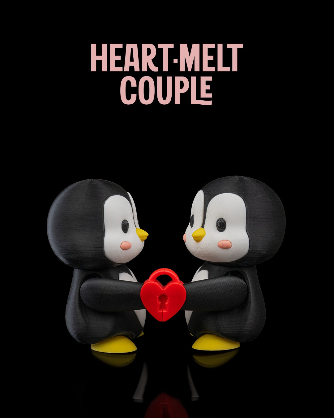 Each penguin holds half a heart and when you place them close to each other, each half snaps to the other (using magnets) simbolizing their lasting union.