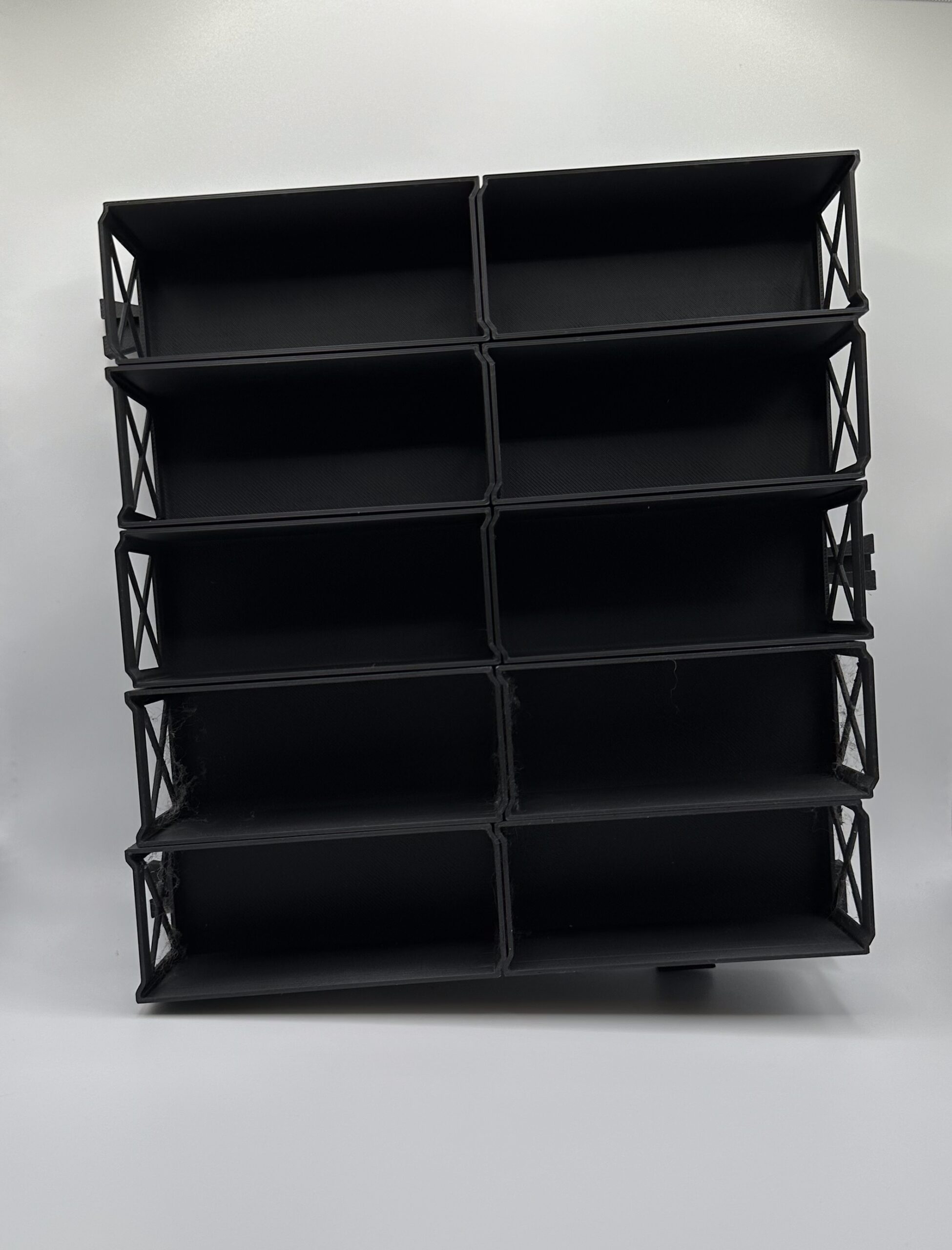 Our system features a base plate that easily mounts to your wall and holds 10 individual car boxes. What makes this system truly unique is its modular design. The base plates easily connect together, allowing you to expand your storage as your collection grows. Start with one base plate and add more as needed to create a custom display that fits any space.