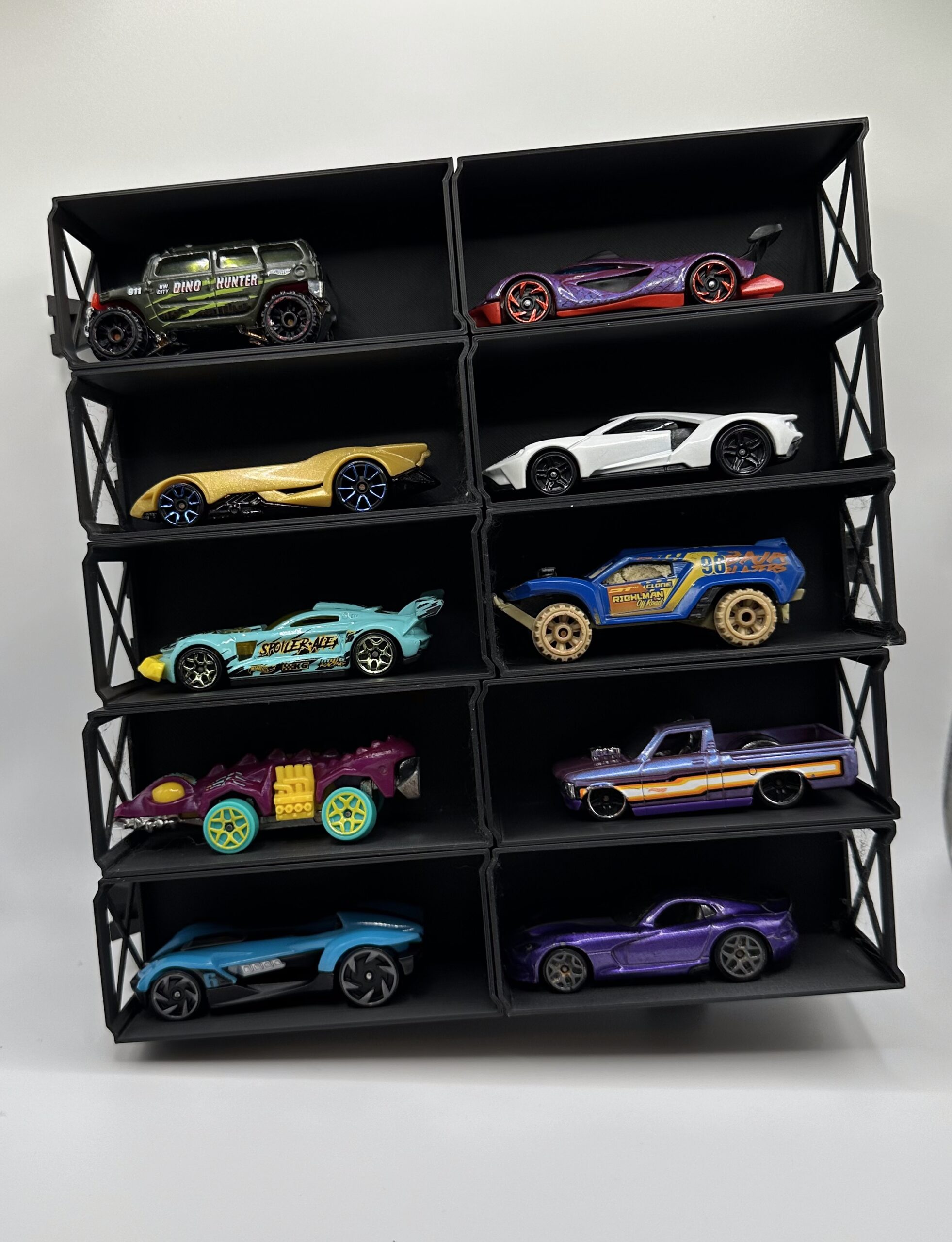 Transform your Hot Wheels collection from a cluttered pile to a stunning wall display with our 3D printed wall-mounted storage system! This innovative system allows you to neatly organize and proudly showcase your favorite die-cast cars, while freeing up valuable shelf and floor space.