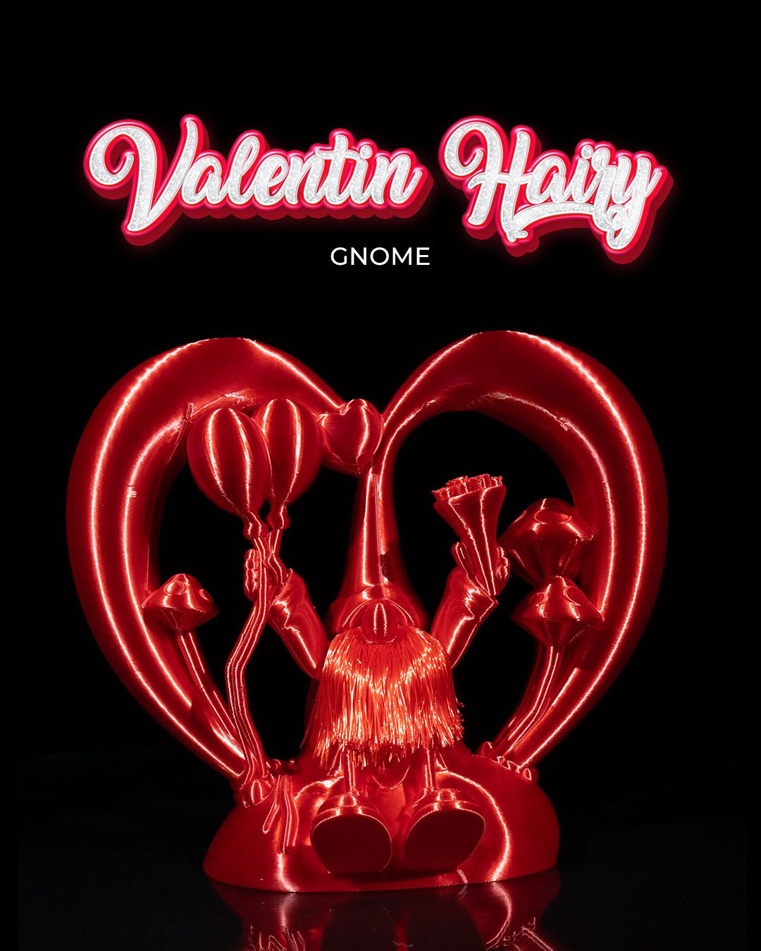 Meet Valentin Hairy, the ultimate symbol of romance wrapped in red shimmer and overflowing charm. With his fuzzy beard, heart balloons, and bouquet of roses, he’s the magical messenger of affection your loved one didn’t know they needed.