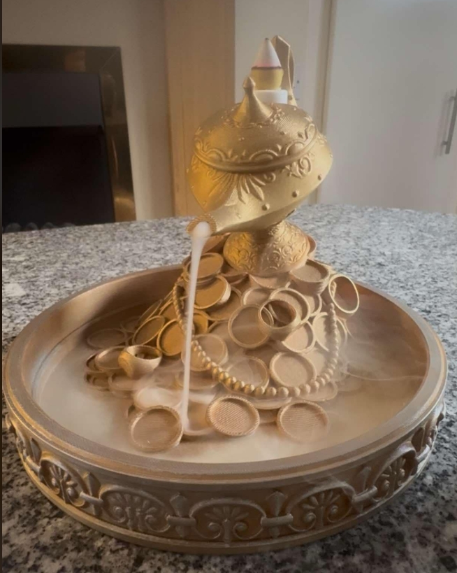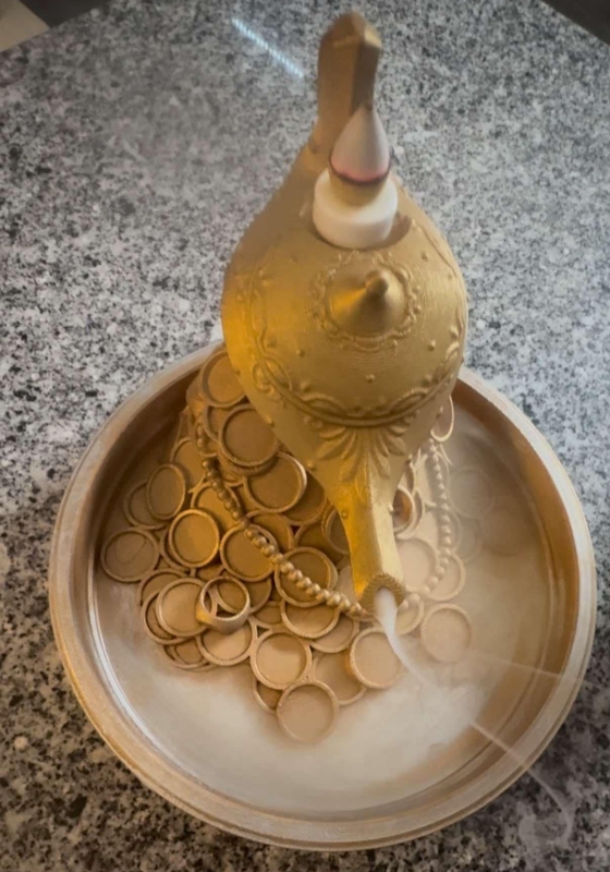 in the final 2 pictures the lamp of wealth is printed in a single standard colour of ‘gold’ with a silver metallic finishing touch for this effect this is an extra £1.70
