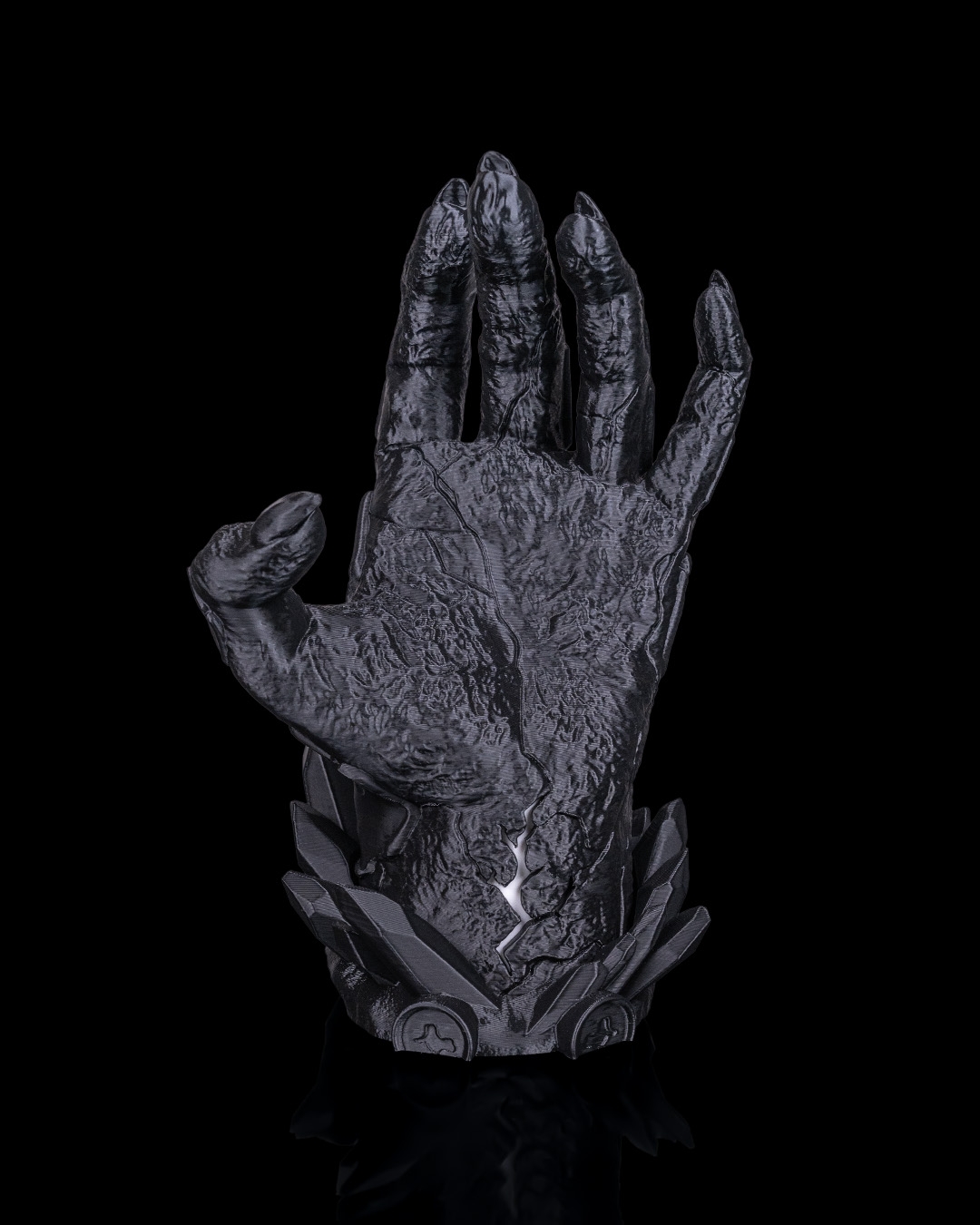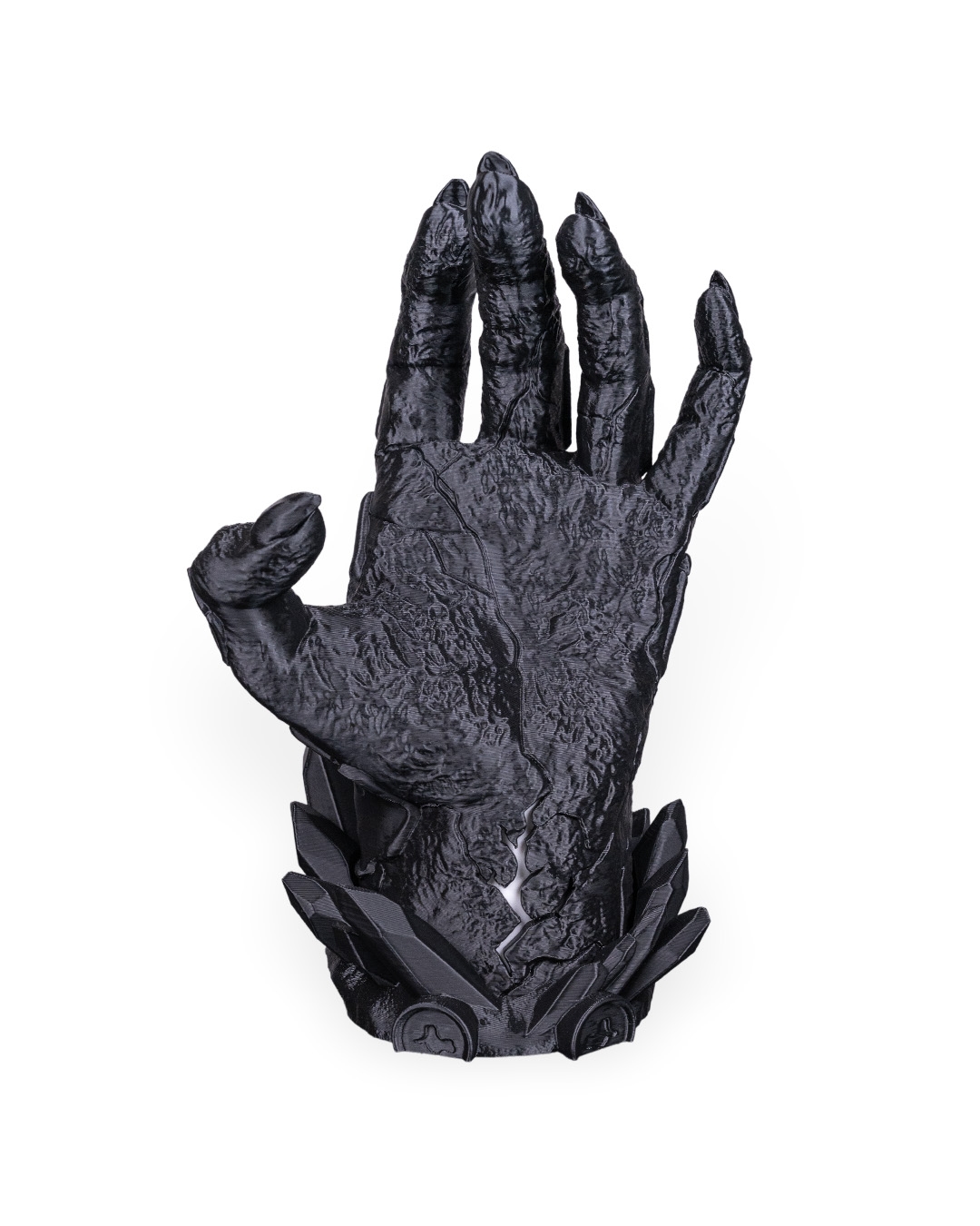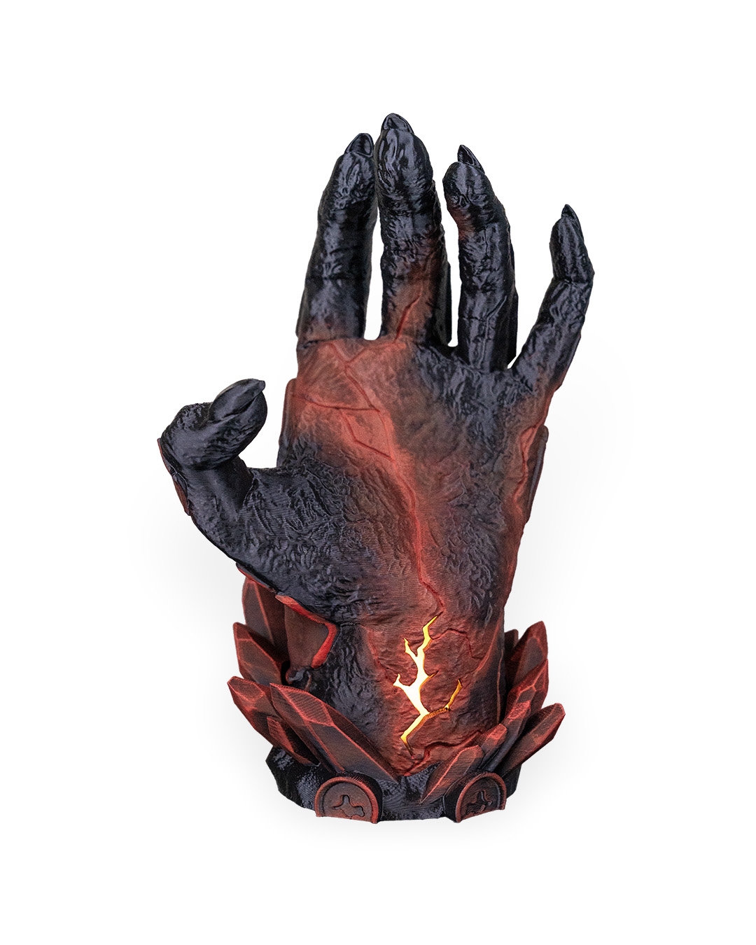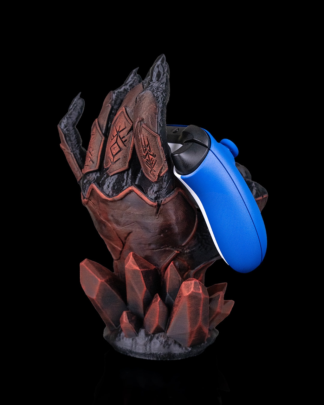 Dark, dramatic, and still better at holding it together than you. Introducing Light Fracture, a gaming controller holder that has been 3D printed & hand painted. It also features a battery operated tea-light (included) in the base to add a subtle glow to the crack positioned on the wrist.