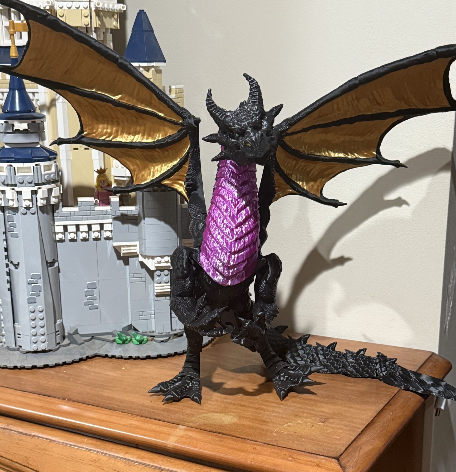 This amazingly detailed dragon looks a lot like the one in the Disney movie! My husband brought it home and immediately knew that the best place for it was right next to the Lego Disney castle I had built. It is definitely a conversation starter in our home!
