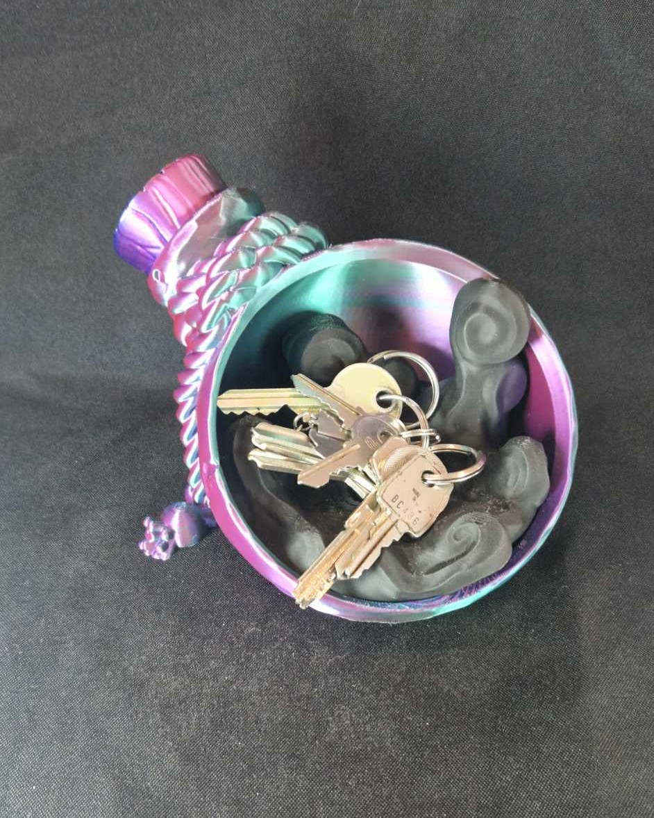 Laissez libre cours à votre imagination avec ce plateau organisateur en forme de potion magique ! Son fond en forme de vapeur ajoute une touche mystique, tandis que son design unique en fait un accessoire parfait pour ranger vos clés, bijoux ou même exposer une petite figurine. Pratique et décoratif, ce plateau enchanteur apporte une dose de magie à votre table d’entrée, votre coiffeuse ou votre bureau. Idéal pour les amoureux de l’univers fantastique et les passionnés d’objets à la fois utiles et créatifs !