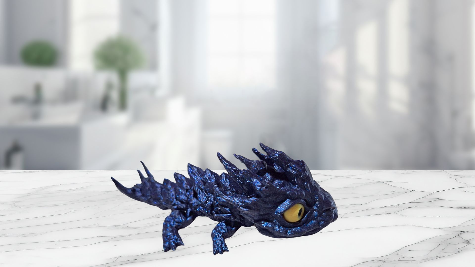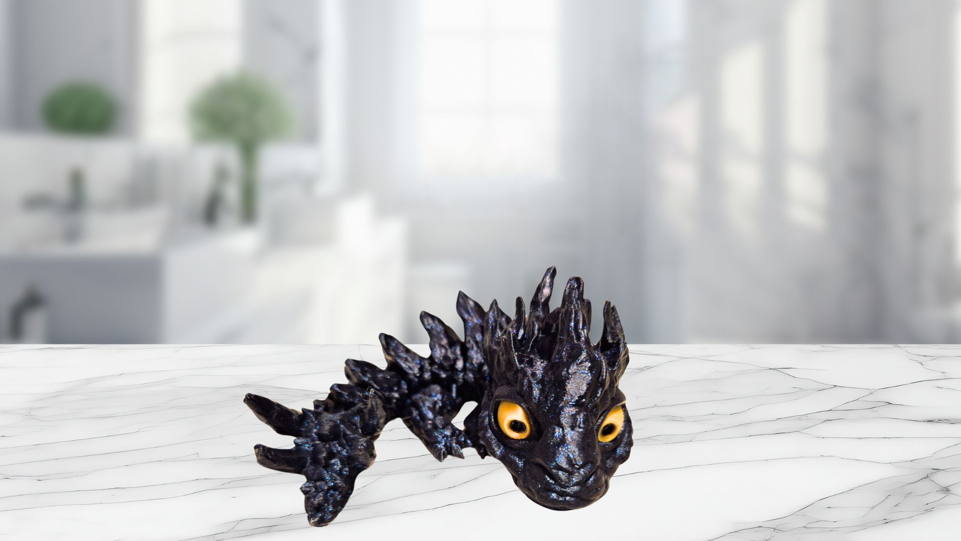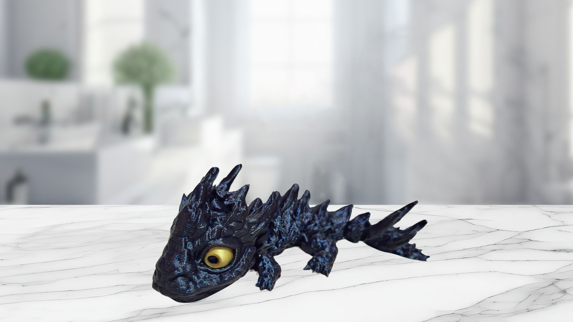 Galaxy black baby rock dragon with gold eyes.