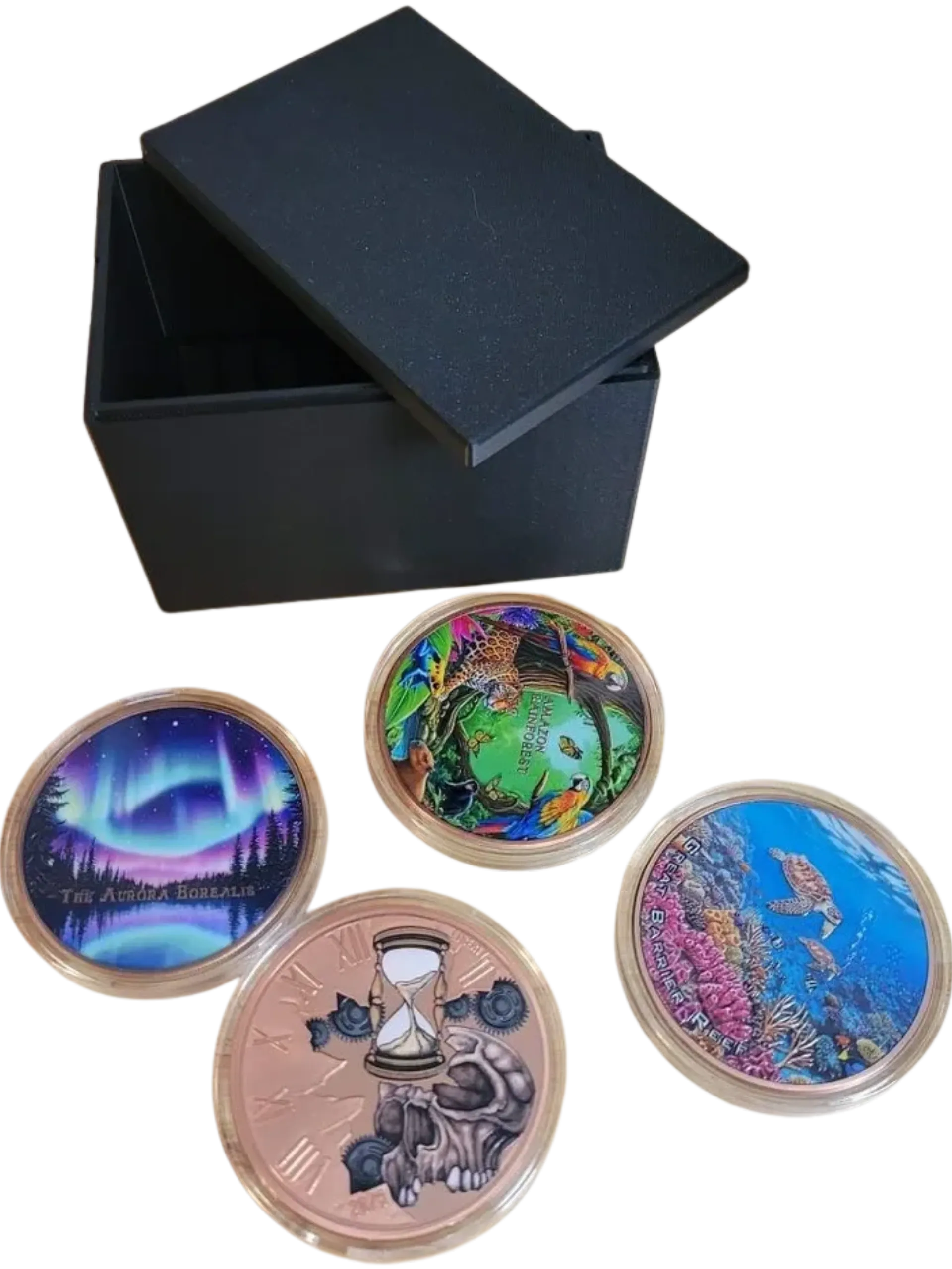 Designed to hold up to 10 – 5 ounce coin capsules.