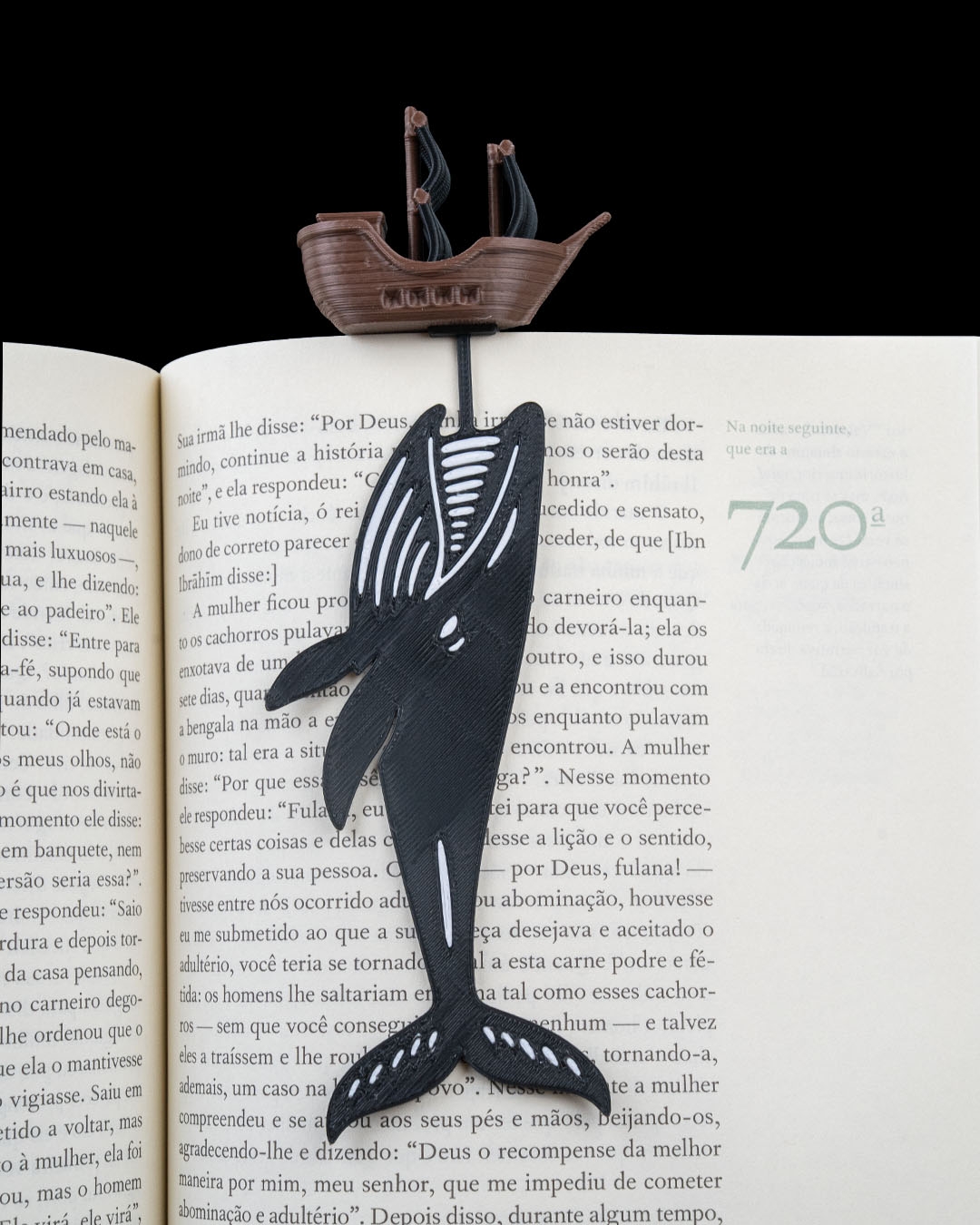 bookmark of a whale coming up to destroy a ship